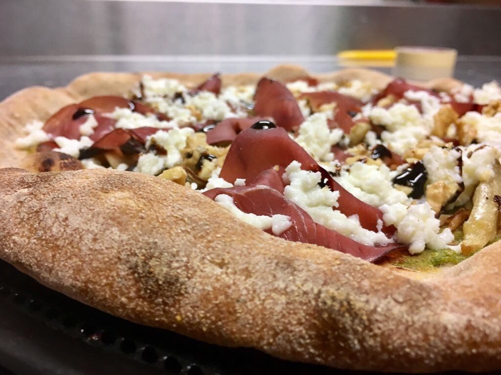 Un prodotto pensato con ingredienti della nostra terra grazie ad attente collaborazioni con produttori di farine, mozzarella, pomodoro e tutti i frutti che la nostra natura ci propone in modo genuino e sincero. Cotto in forno a legna...